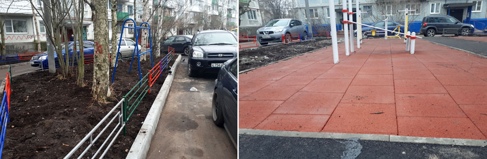 Кстати, соседней двор, у домов № 16 по ул. Красных партизан, наполовину закатали в асфальт под парковку. Думаю, об этом расскажет в своей серии про благоустройство дворов . Минимум, что надо знать на фото ниже. Обратите внимание как хорошо и ровно уложено покрытие на детской площадке