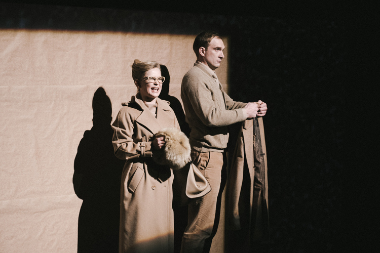 © Екатерина Краева На широкой площадке ЦИМа — затянутый крафтовой бумагой помост (Рыжаков впервые работает с выдающимся сценографом Николаем Симоновым), по центру которого замерли Андрей Бурковский и Юлия Пересильд в одолженной у Барбары Брыльской меховой шапке. Музыкальный сигнал — и начинается словесная баталия, в кульминационные моменты переходящая в рукоприкладство: ближе к финалу одетые от Bosco di Ciliegi герои «Солнечной линии» изобьют друг друга всеми возможными, как в ужастиках, способами, с карикатурным ломанием рук и смачными ударами в пах. Фоном для изматывающего, патетичного, смешного поединка, пересыпанного изящным матом, служит видео Владимира Гусева, изображающее то интерьер дома, то косой дождь, а в момент трогательного признания взрывающееся россыпью космоса.