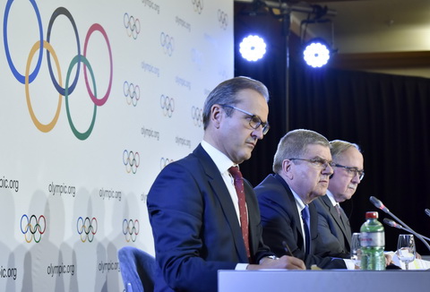 2. Dec 6 2017 International Olympic Committee (IOC) President Thomas Bach (C) attends a press conference PK Pressekonferenz in Lausanne, Switzerland, on Dec 5, 2017. The IOC on Tuesday decided to suspend the Russian Olympic Committee (ROC) from the 2018 Pyeongchang Winter Olympic Games Olympische Spiele Olympia OS while paving the way for clean Russian athletes to compete without bearing the Russian national flag. Christophe Moratal/ Imago/TASS