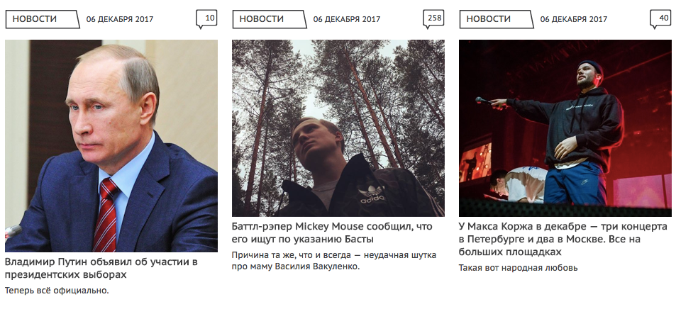 Про выдвижение Путина написал сайт про рэп The Flow. Там президент в компании Макса Коржа.