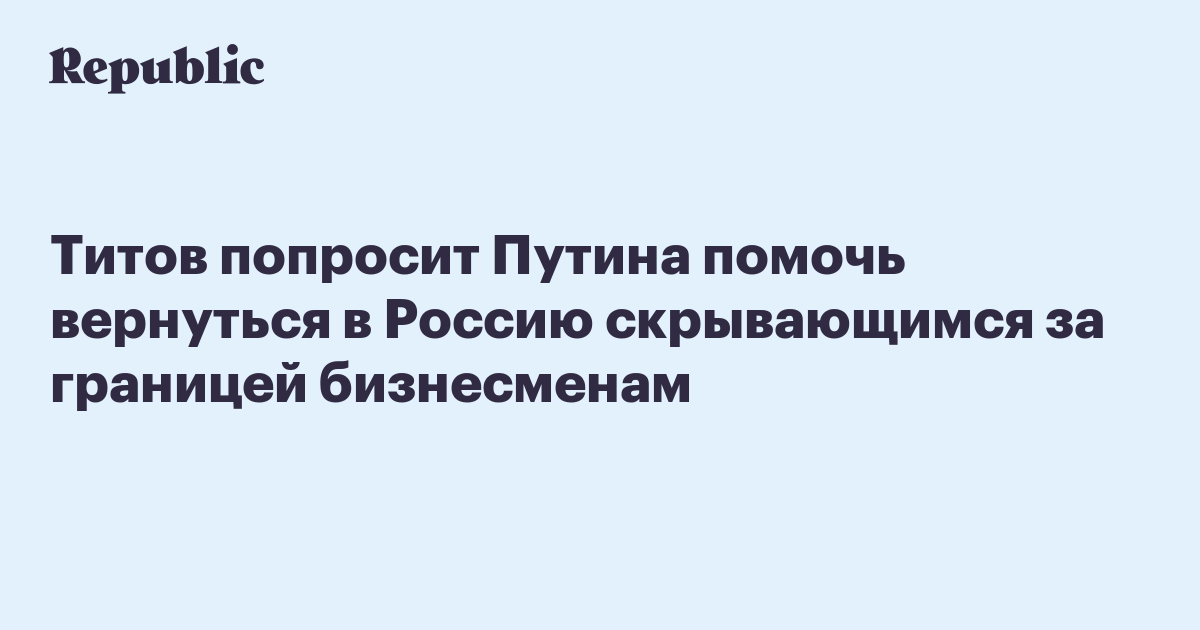 Титов попросит Путина помочь вернуться в Россию скрывающимся за границей бизнесменам