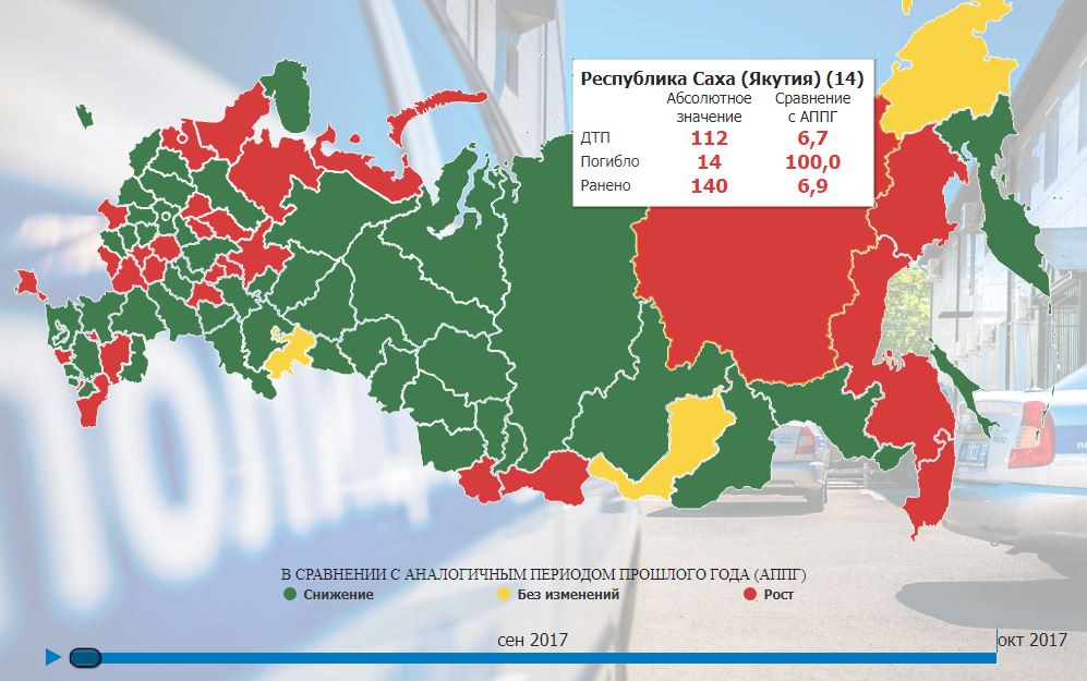 Статистику по каждому региону России можно найти на официальном сайте ГИБДД. Данные представлены в виде карты.