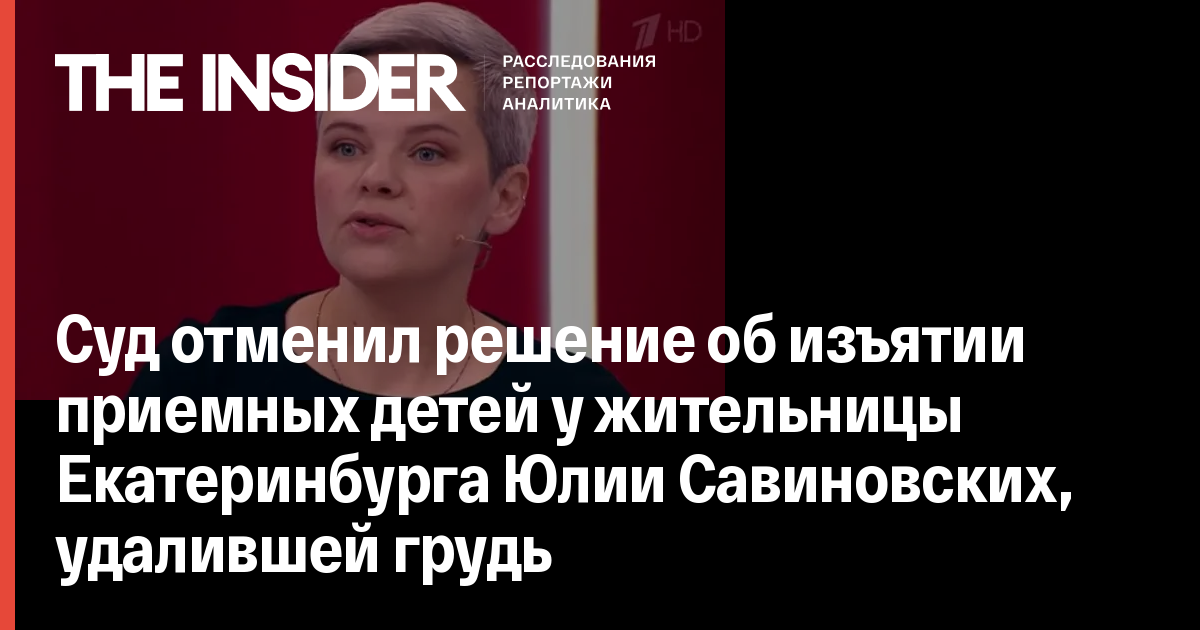Суд отменил решение об изъятии приемных детей у жительницы Екатеринбурга Юлии Савиновских, удалившей грудь