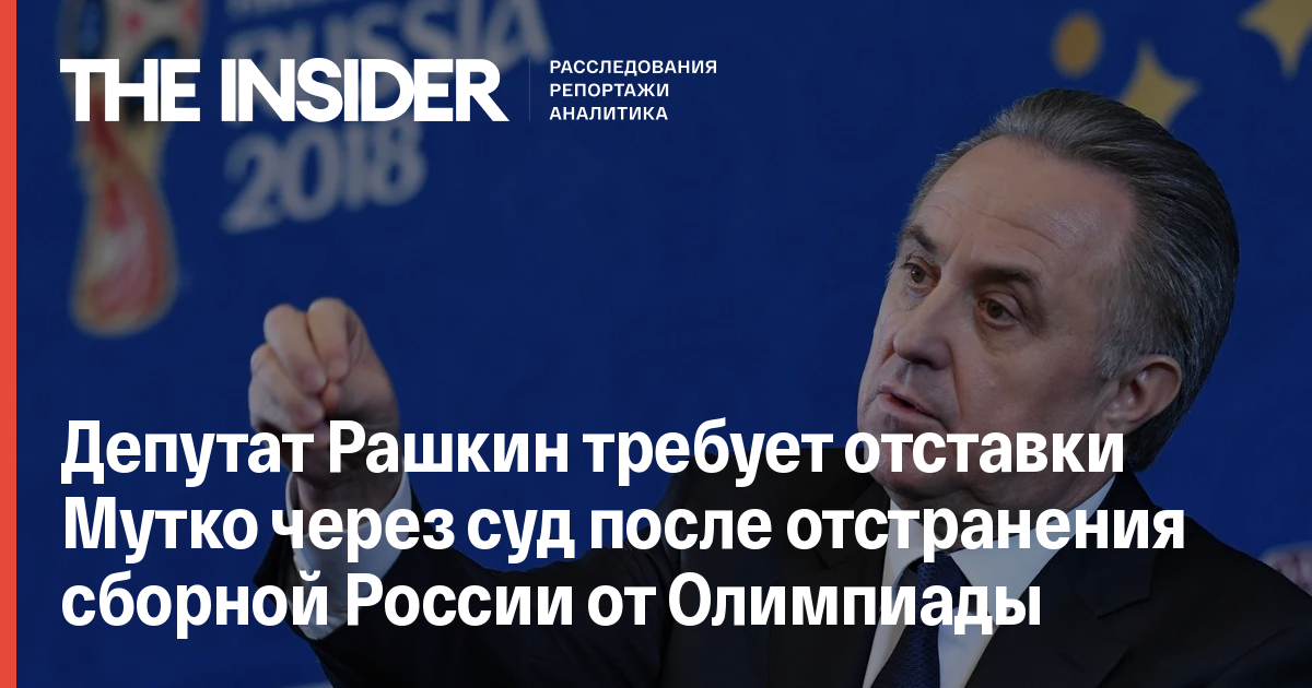 Депутат Госдумы от КПРФ, первый заместитель председателя комитета Госдумы по делам национальностей Валерий Рашкин подал иск в суд на вице-премьера России Виталия Мутко. Иск связан с решением Международного олимпийского комитета отстранить сборную России от Игр. Об этом пишет «Дождь».