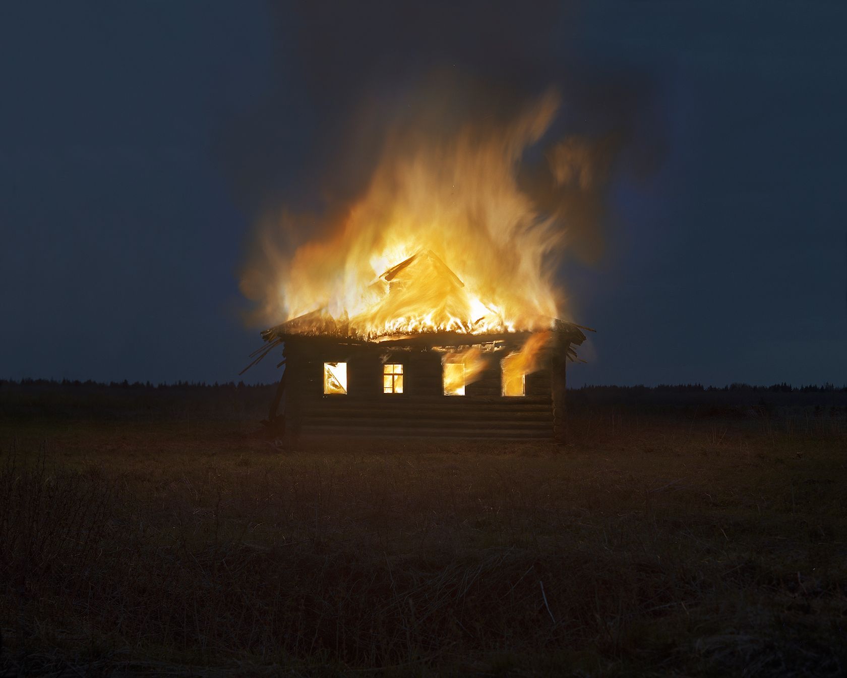 Мне кажется, художник может ни у кого не спрашивать, что ему позволено, — он действует согласно своей уверенности в своевременности жеста. И в этой уверенности есть степень его ответственности и зрелости. Как любой разумный человек и представитель общества, он, конечно, понимает, что должен действовать в рамках закона. Но что, если действие художника совпадает с действием природы и стихии? И границу именно этой разницы на предъявленных снимках сложно найти. Так же разрушительно для домов работает случайный пожар, наводнение, ураган, время, в конце концов, — оно разрушает все, что нам может быть дорого. Время — самое губительное, просто оно медленнее нас, но огонь может эту заметность ускорить. Мы моментально осознаем страх потери, который склонны замещать речами о сохранении наследия. Правда, уже после случившегося, стыдясь, что не обратили внимания на это раньше.