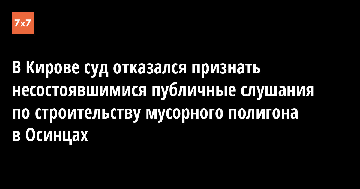 Октябрьский районный суд Кирова 7 декабря отказался признать несостоявшимися публичные слушания накануне строительства полигона ТБО в деревне Осинцы в 2014 году. Об этом «7x7» сообщил председатель экологической организации «Среда обитания» Александр Ситников.