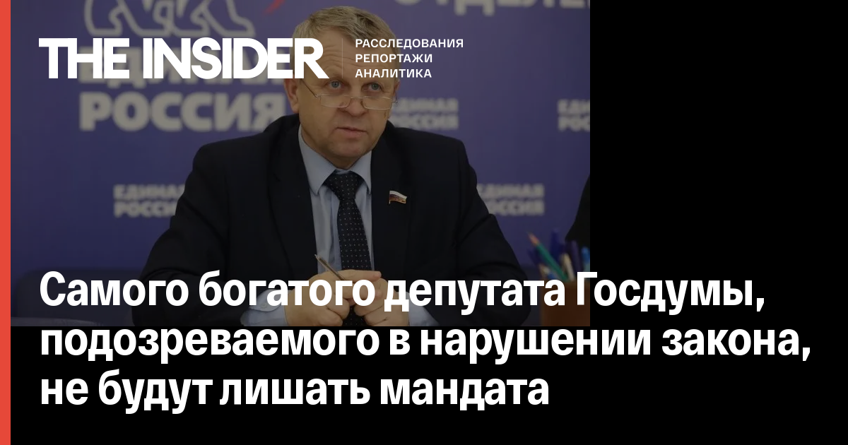 Самого богатого депутата Госдумы, подозреваемого в нарушении закона, не будут лишать мандата