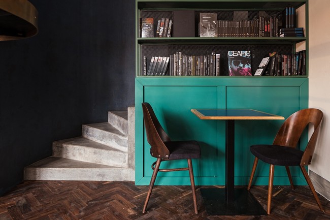 Интерьер заведения разработала дизайн-студия Kapodaki, работавшая над проектами Bekitzer, Social Club и Soul Kitchen Hostel. Он выполнен в классическом британском стиле и отсылает к магазину главного героя сериала «Книжный магазин Блэка».