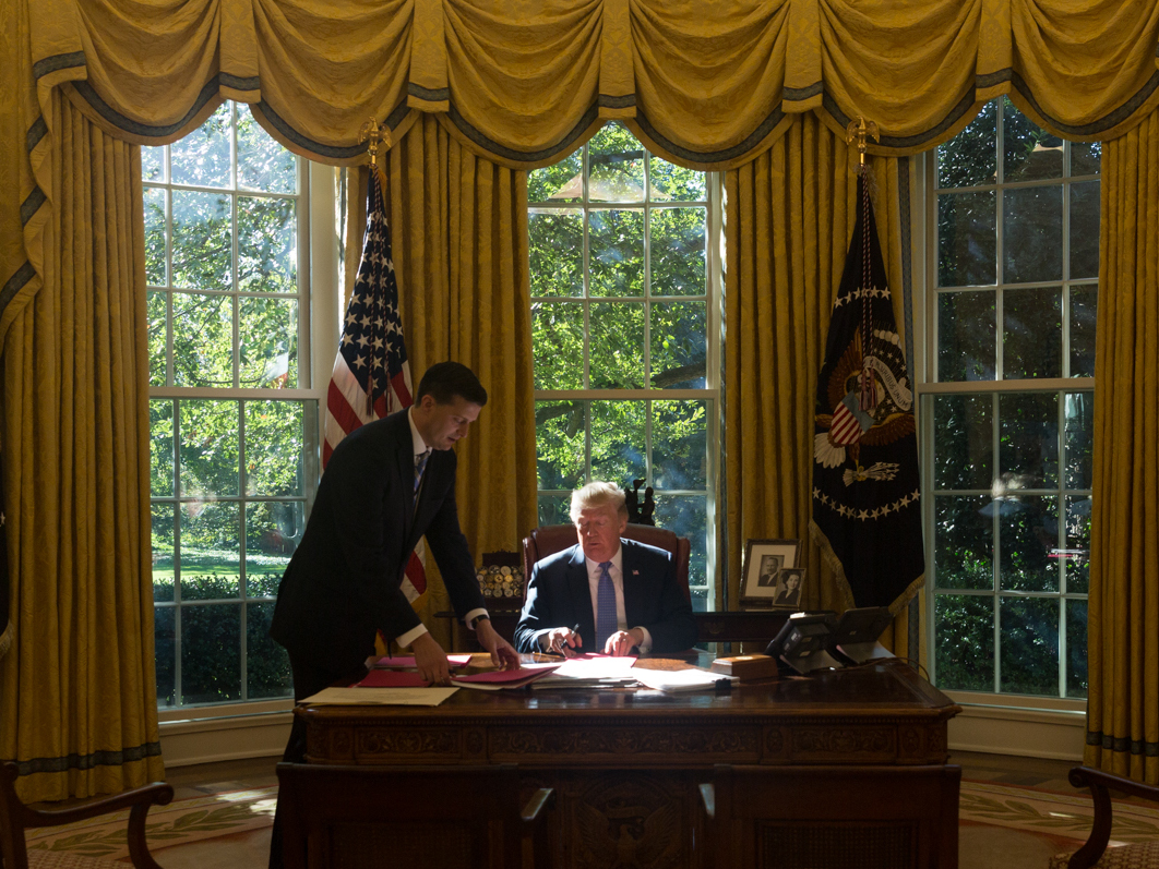 Дональд Трамп в Овальном кабинете D. Myles Cullen / The White House В финальном докладе, по данным собеседников The Bell, могут оказаться не только фамилии бизнесменов. Закон также предписывает администрации Трампа определить круг высших должностных лицах, задействованных во внешней политике, а также неких полугосударственных структур. В докладе также могут упоминаться чиновники, вплоть до министров и сотрудников аппарата правительства и Администрации президента. Также закон обязывает внимательно изучать семейные связи и оценить размер состояний и источники доходов членов семей лиц, на которых накладываются санкции, — жен, детей, родителей, братьев и сестер и т.д.