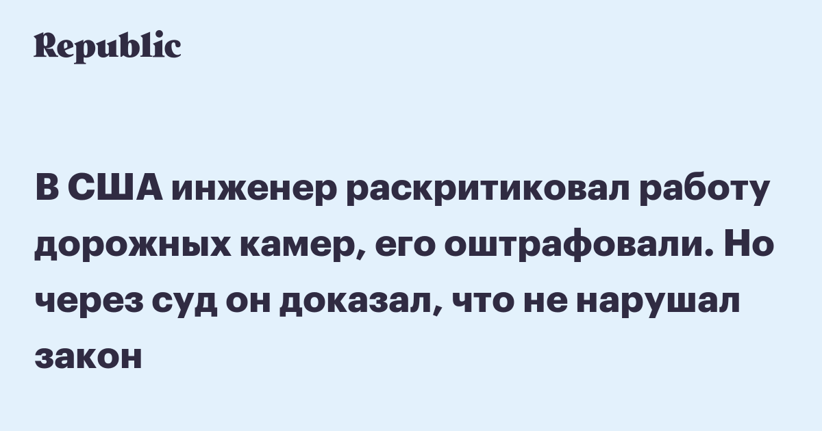 В США инженер раскритиковал работу дорожных камер, его оштрафовали. Но через суд он доказал, что не нарушал закон