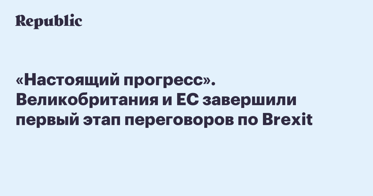 Великобритания и ЕС завершили длившуюся семь месяцев первую фазу переговоров по выходу Лондона из состава союза. В ходе встреч сторонам удалось договориться по трем ключевым вопросам: финансовым обязательствам Великобритании, ирландской границей и правам граждан. В ЕС достигнутые договоренности назвали «настоящим прогрессом, который еще несколько месяцев назад считался невероятным».