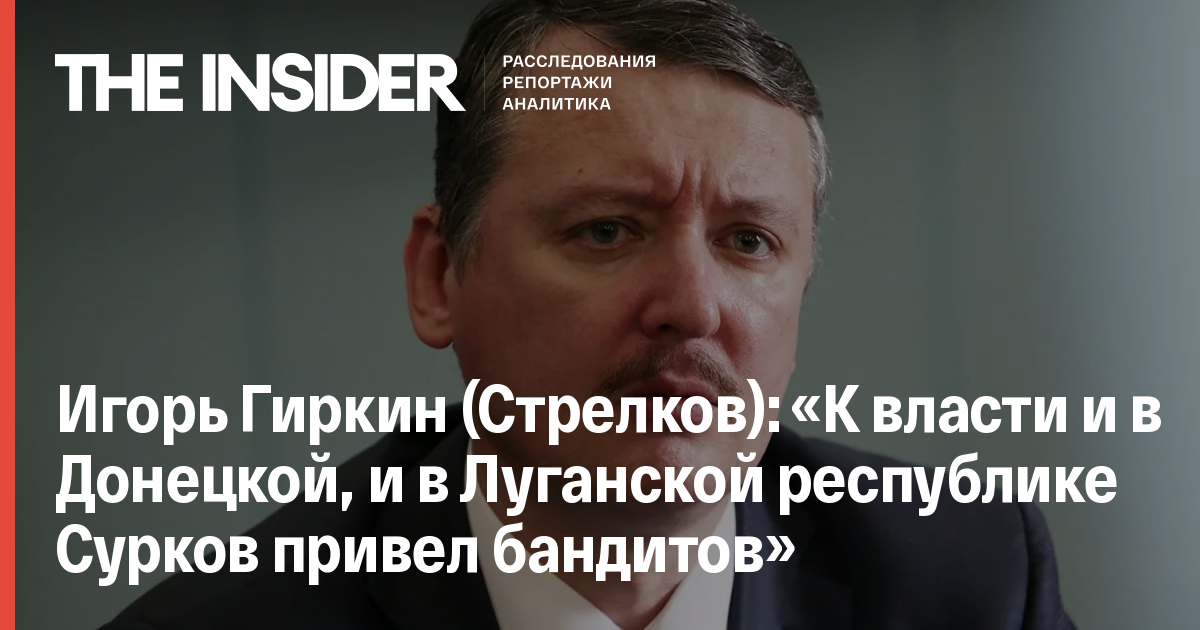 Сегодня The Insider и Bellingcat опубликовали расследование, доказавшее, что разыскиваемый международной следственной группой «Дельфин» - это не кто иной, как российский генерал-полковник Николай Ткачев. В ходе расследования, чтобы определить истинную роль Ткачева, The Insider поговорил с рядом участников военного конфликта в Украине. Среди них был и бывший «министр обороны ДНР» Игорь Гиркин, также известный как Стрелков. Поскольку интервью вышло далеко за пределы заданной темы, в расследование вошла лишь небольшая часть. Здесь же мы публикуем его целиком. Среди прочего Гиркин рассказал о роли Владислава Суркова и Константина Малофеева в украинском конфликте, о деятельности «группы Вагнера» в Луганске и о том, чьей инициативой было выдвинуть войска из Крыма на восток Украины.