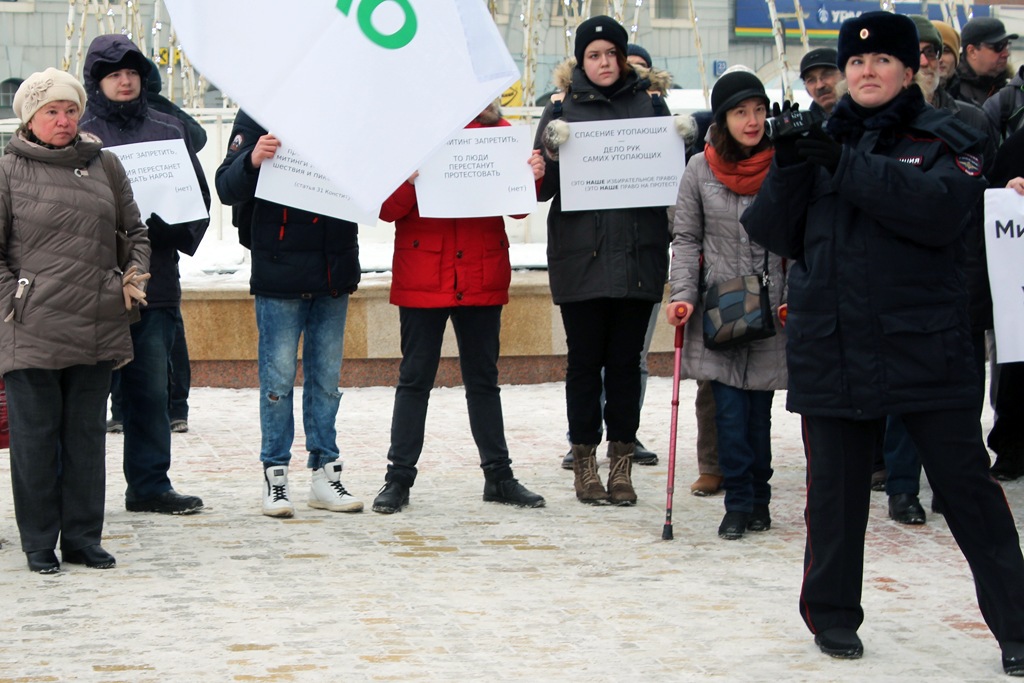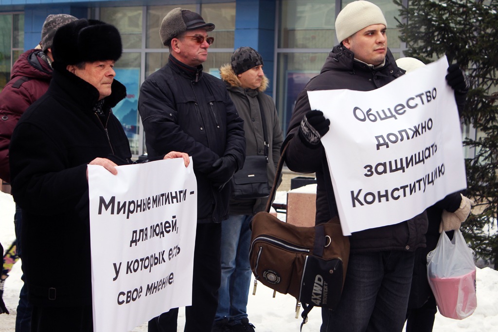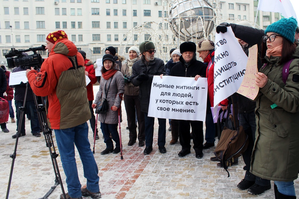 На митинг за митинги пришли представители «Яблока», «Демократического выбора», незарегистрированной Партии прогресса, активисты движения «Пенсионеры за достойную жизнь» и независимый депутат горсовета Наталья Пинус. Собралось около 50 человек, не считая десятка полицейских в форме и в штатском.