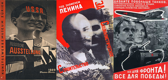 Похожий прием — два лица с тремя глазами — находим у Лисицкого в фотомонтаже к плакату Русской художественной выставки 1929 года. Такие же три глаза на два лица встречаются у Густава Клуциса: в плакате «Под знаменем Ленина» (1930) головы Ленина и Сталина сливаются глазами. Образ, известный по так называемой семиипостасной Троице — изображению Отца, Сына и Святого Духа с тремя лицами и четырьмя глазами, апроприированный Лисицким, сегодня кажется продолжением европейского сюрреализма, получившего «в стране большевиков», как показали кураторы Александра Селиванова и Надя Плунгян, серьезное развитие.