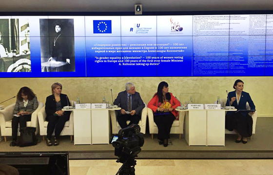 Общественная палата и Представительство ЕС в России 7 декабря провели международную конференцию «Гендерное равенство — революция или эволюция?», приуроченную к столетию избирательных прав женщин в Европе и столетию назначения первой в истории женщины-министра (и второй после Дианы Абгар женщины-посла) Александры Коллонтай.