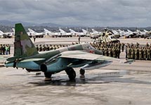 На базе Хмеймим Путина встретили сирийский диктатор Башар Асад, глава Минобороны России Сергей Шойгу и командующий российской группировкой в Сирии, главком российских воздушно-космических сил генерал-полковник Сергей Суровикин. Генерал доложил президенту, что за время участия России в сирийском конфликте ВКС уничтожили более 32 тысяч боевиков-исламистов.