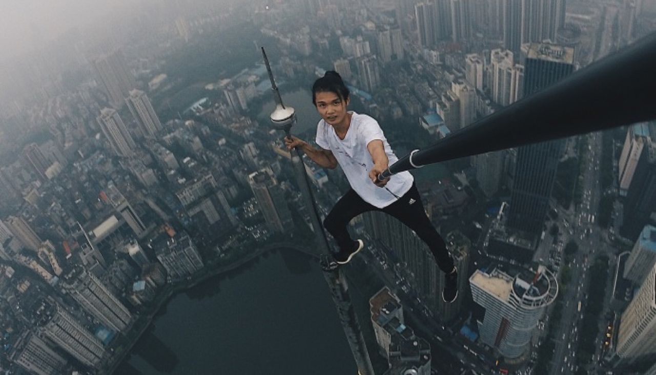 В Китае руфер упал с крыши небоскреба. Его падение сняла камера