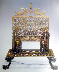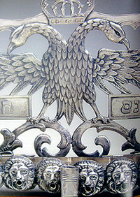 Интересный тип ханукии получил распространение в Восточной Европе — он назван в честь основателя хасидизма рабби Исраэля Баал Шем Това (1698–1760). Ханукия этого типа совмещала филигранный орнамент широкой задней стенки с литыми фигурками диковинных птиц и животных. Своей структурой, композицией и декором она передавала устройство мироздания, мир в миниатюре. Симметрично организованная ханукия типа «Баал Шем Тов» имела центральную ось, увенчанную одним из символов власти Творца над миром: короной, двуглавым орлом, скрижалями Завета и т.п. Надо сказать, что такой популярный геральдический символ, как двуглавый орел, получил в еврейском искусстве совершенно иное звучание. Две головы орла воплощают идею суда и милости — качеств, с помощью которых Творец управляет мирозданием. Сам же орел символизирует Всевышнего, неустанно пекущегося о своем народе. К центру ханукального светильника «сбегаются» фигурки животных, птиц и всевозможных чудесных существ, расположенные на разных уровнях и этажах: мир во всем своем многообразии прославляет Создателя.