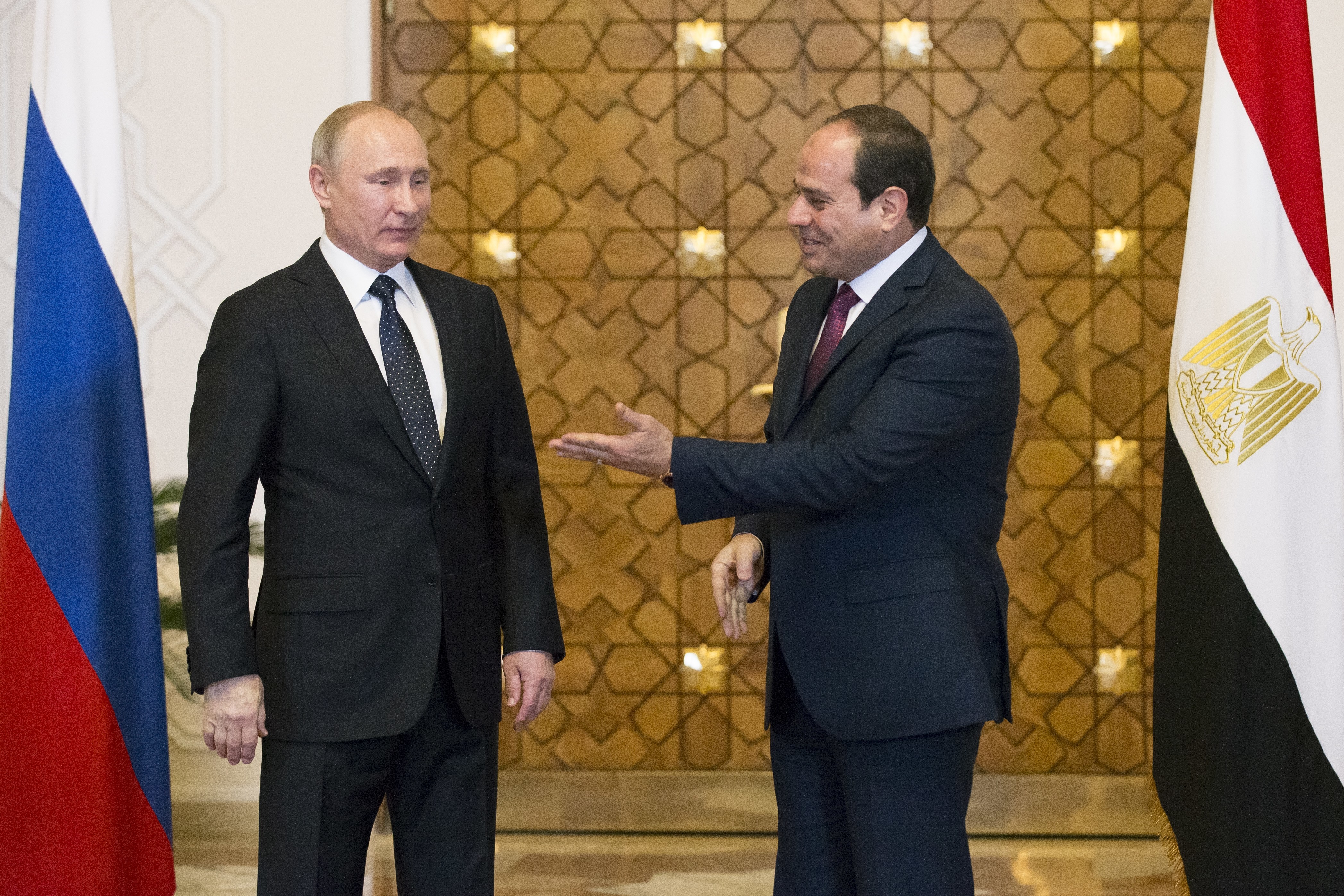 Египетская сторона сообщила, что Путин и Сиси проведут переговоры о "дальнейшем расширении рамок двустороннего сотрудничества в различных областях, в частности в политических, экономических и торговых отношениях".