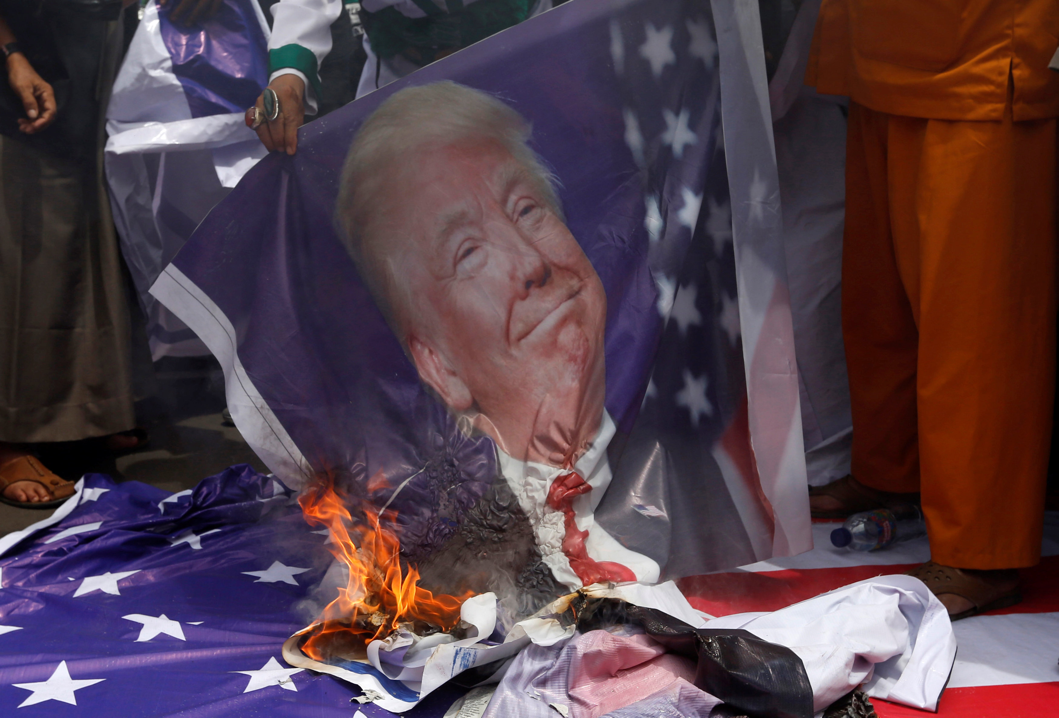 В Индонезии группы исламистов в понедельник сожгли фотографии президента США Дональда Трампа, а также американские и израильские флаги во время протеста у посольства США. Они выражали негодование решением Трампа признать Иерусалим столицей Израиля. Индонезия, где проживает самое большое мусульманское население в мире, присоединилась к глобальному хору осуждения решения Трампа, которое, по их мнению, угрожает безопасности и стабильности на Ближнем Востоке и в мире. Статус Иерусалима, города, являющегося святыней для евреев, мусульман и христиан, стал одним из самых сложных барьеров на пути к израильско-палестинскому миру.