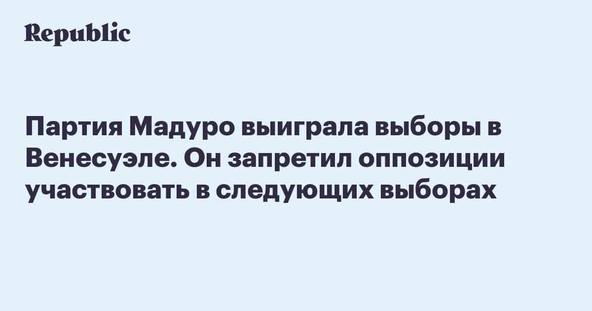 Партия Мадуро выиграла выборы в Венесуэле. Он запретил оппозиции участвовать в следующих выборах