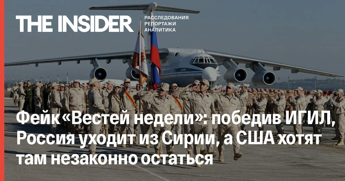 Фейк «Вестей недели»: победив ИГИЛ, Россия уходит из Сирии, а США хотят там незаконно остаться