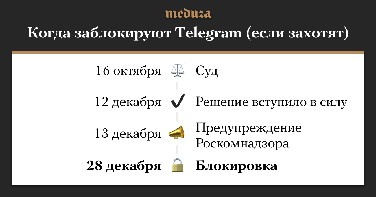 Тelegram не смог добиться отмены штрафа за отказ передать ФСБ ключи шифрования переписки пользователей. Это значит, что Роскомнадзор, если захочет, сможет очень скоро заблокировать мессенджер.