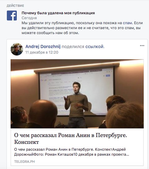 Внимание на это обратило издание The Village. При попытке перейти по ссылке на Telegraph из фейсбука появлялось предупреждение о том, что ссылка заблокирована.