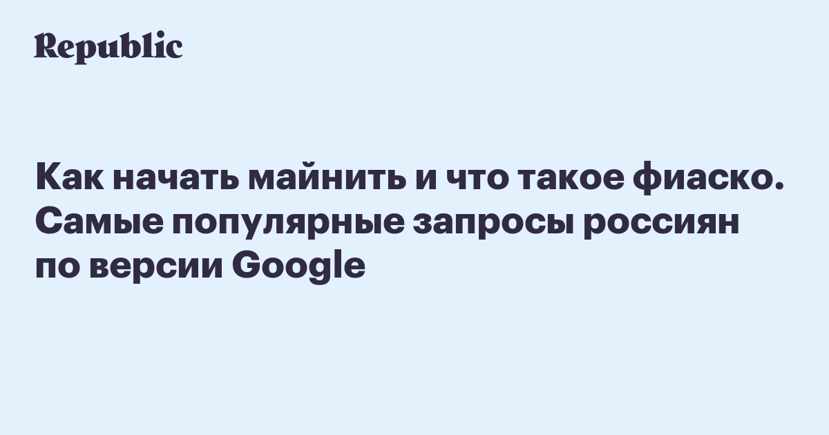 Как начать майнить и что такое фиаско. Самые популярные запросы россиян по версии Google