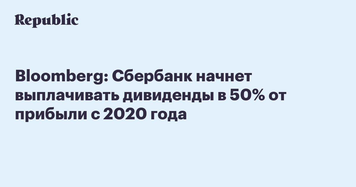 Сбербанк направит дивиденды в 50% от прибыли в 2020 году. Об этом Bloomberg рассказали источники.