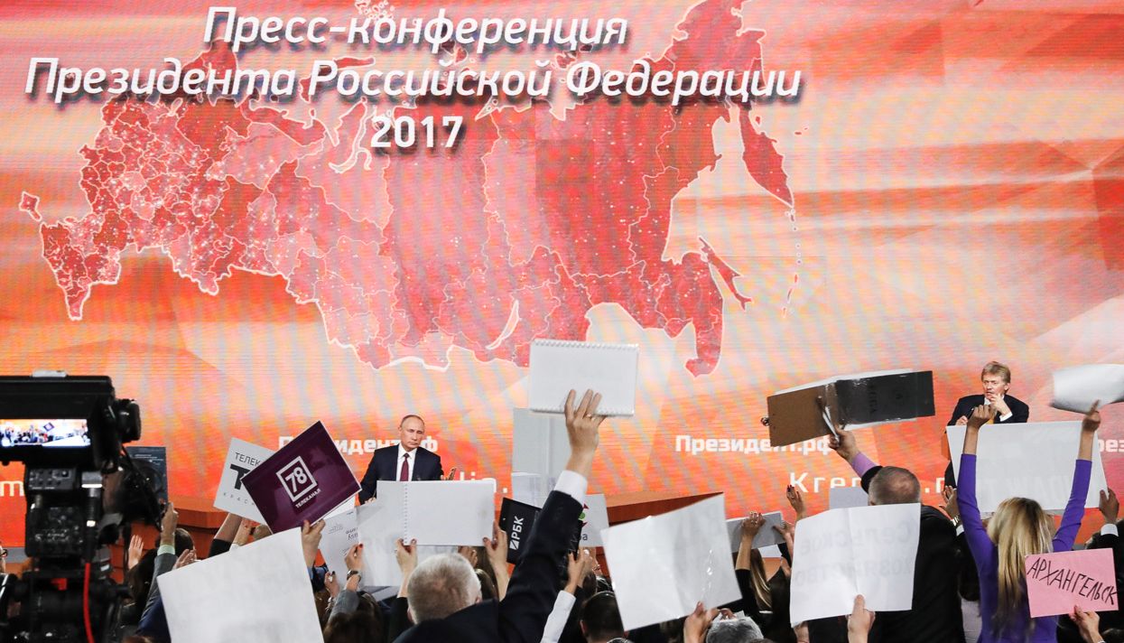 Ниже приведен пересказ реплик президента России Владимира Путина на его большой пресс-конференции 14 декабря 2017 года. Прямые цитаты даны в кавычках.