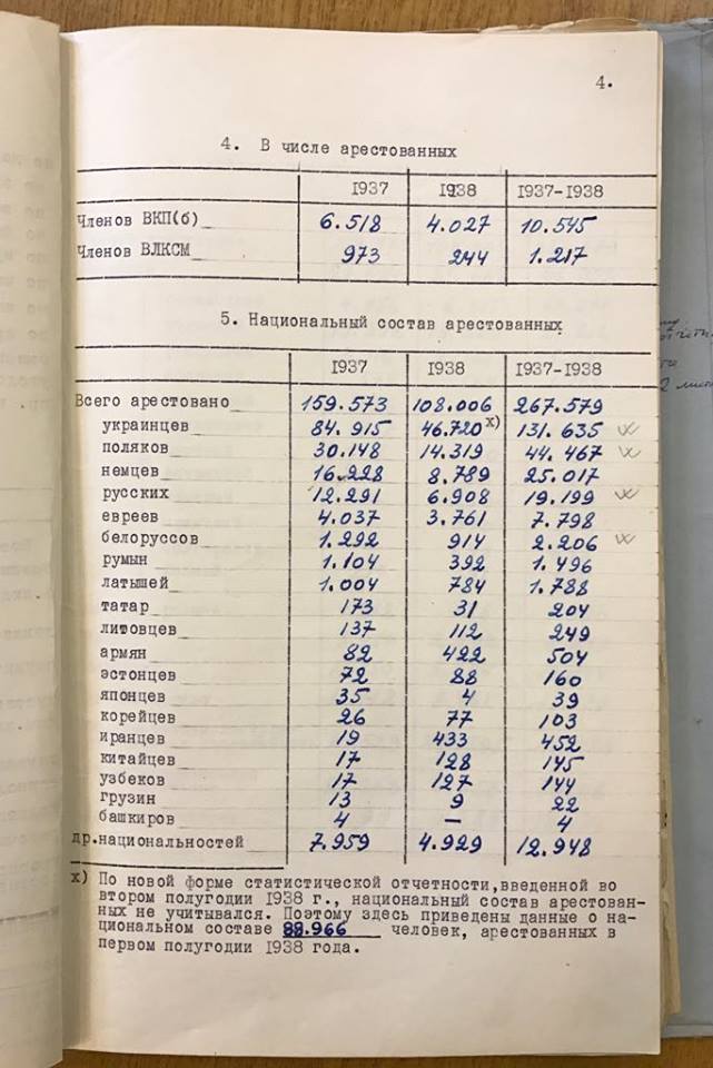 Один из самых информативных и редких документов, который мне удалось найти, – это документальная справка КГБ УССР о массовых репрессиях на Украине в 1937–38 годах, подготовленная осенью 1964 года. Это 90-страничный совершенно секретный документ. Сейчас от этого доклада остался только один экземпляр, который находится в 42-м статистическом фонде архива СБУ. На папке даже написано: "Выдавать только по личному разрешению главы КГБ УССР". Все копии этого доклада были уничтожены специальными актами. Он остался в единственном экземпляре и никогда не публиковался.