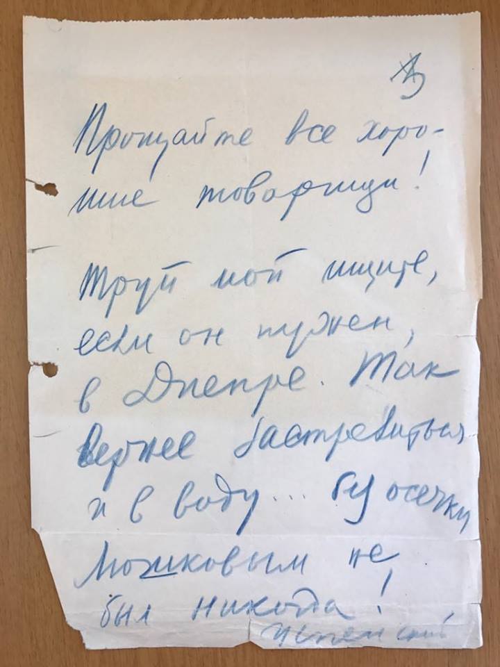 "Труп мой ищите, если он нужен, в Днепре": "предсмертная" записка Александра Успенского из архива СБУ: