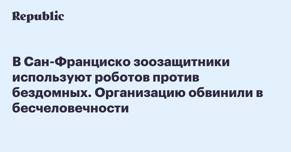 В Сан-Франциско зоозащитники используют роботов против бездомных. Организацию обвинили в бесчеловечности