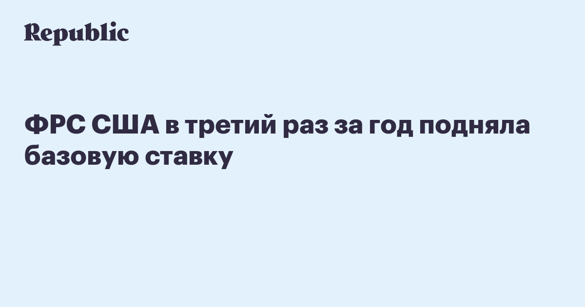 Федеральная резервная система (ФРС) США повысила базовую ставку на 25 базисных пунктов до 1,25–1,5%. Об этом сказано на сайте регулятора.
