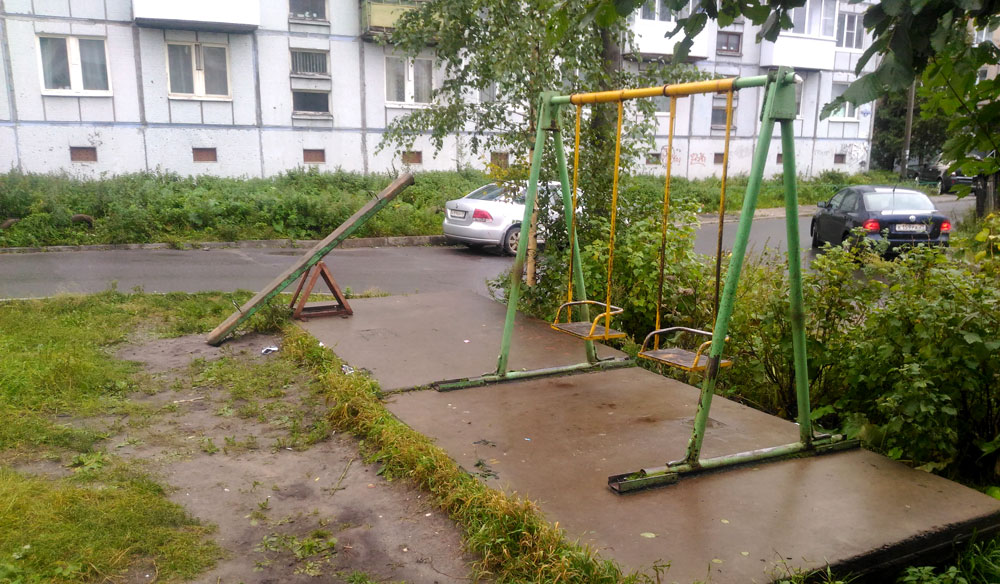 Скопилась у меня в галереи телефона небольшая коллекция «замечательных» детских площадок города Архангельска. «Замечательных» именно в кавычках, ибо они ужасны. А ещё они образец минимализма =). И так, начнем.