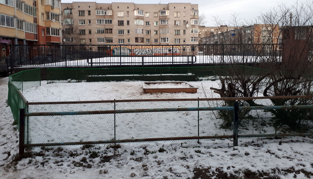 Недавно прошел тут, смотрю — новая площадка, с заборчиком. Для детей предлагаются разнообразные развлечения: песочница, … и всё.