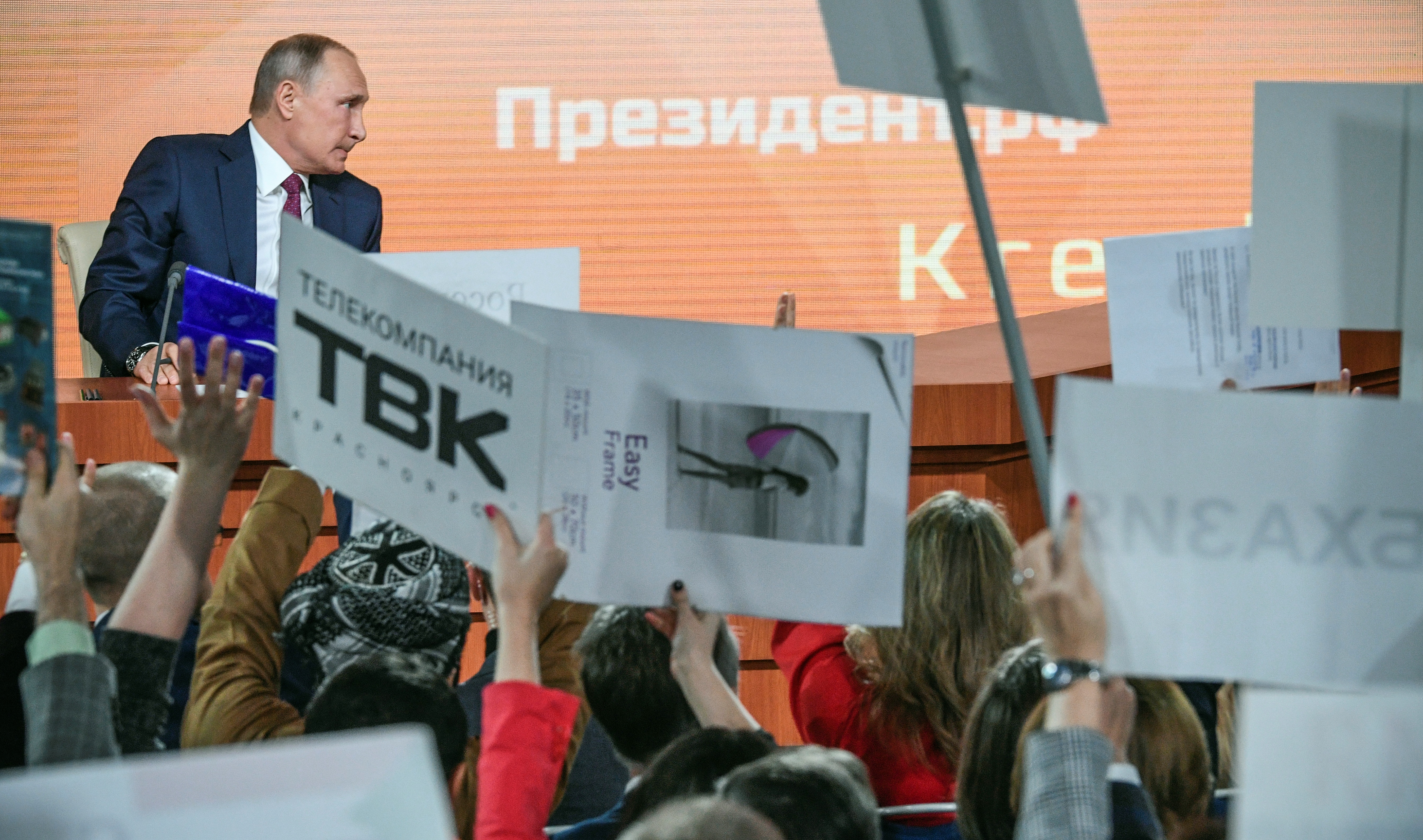 А вот корреспонденту красноярского телеканала ТВК Екатерине Кашутчик задать вопрос Владимиру Путину не удалось. Несмотря на то что сидела она "прямо напротив" президента: