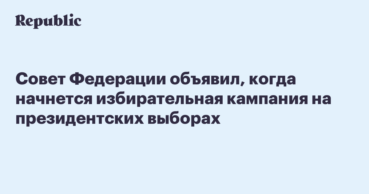 Президентские выборы назначены на 18 марта 2018 года, соответствующее постановление сенаторы опубликуют 18 декабря. Как отметил глава комитета по конституционному законодательству и государственному строительству Андрей Клишас, после опубликования начинается избирательная кампания.