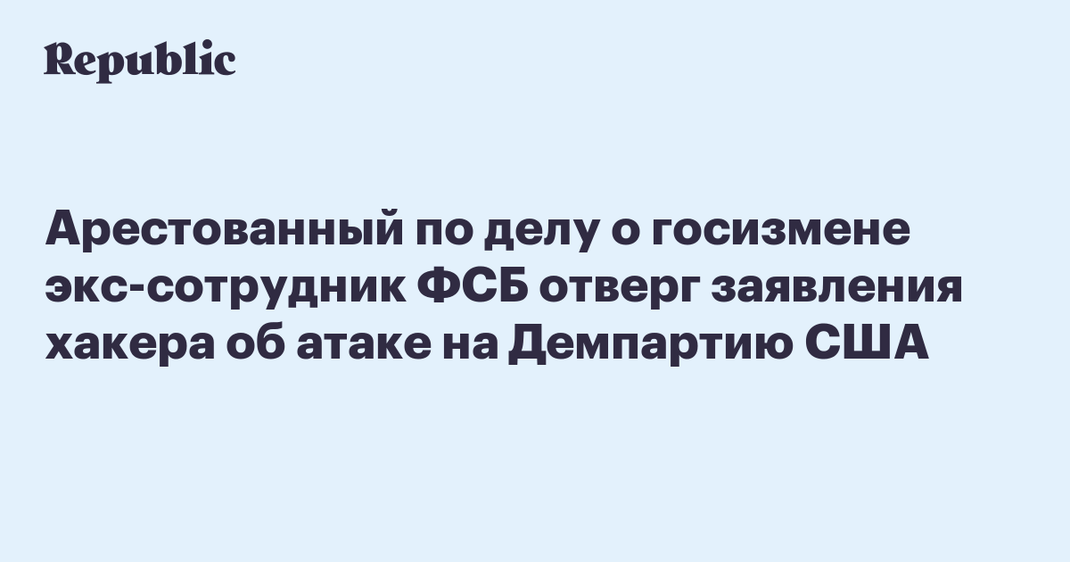 Арестованный по делу о госизмене экс-сотрудник ФСБ отверг заявления хакера об атаке на Демпартию США