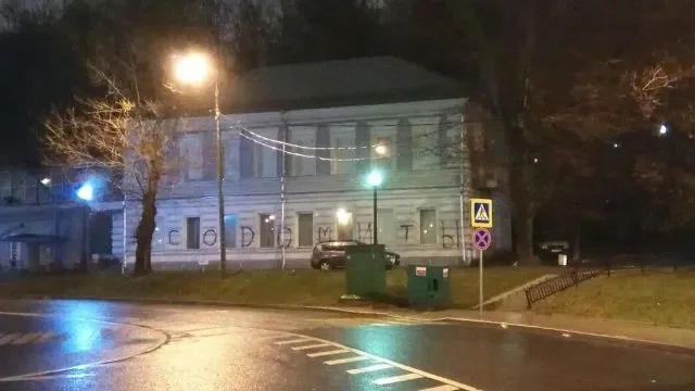 На стенах Сахаровского центра в Москве появилась надпись «#Содомиты». Фотографии надписи опубликовали телеграм-канал Mash и телеканал РЕН-ТВ.