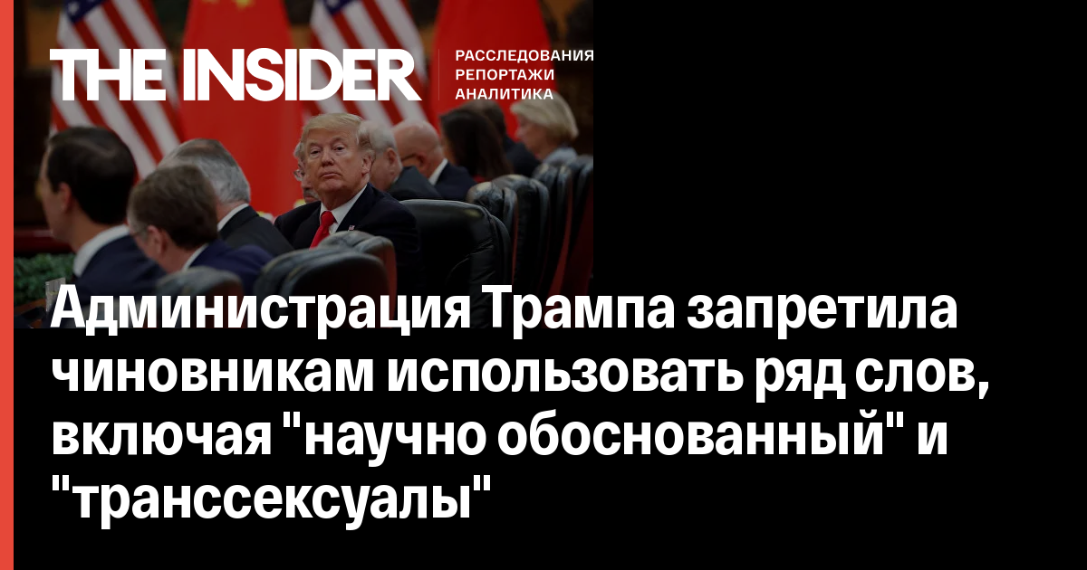 Администрация американского президента Дональда Трампа запретила официальным лицам из Центра по контролю и профилактике заболеваний США (CDC) использовать список из семи слов или фраз - в том числе «плод», «научно обоснованный» и «трансгендер» в официальных документах, готовых к бюджету на следующий год. Полный список слов, попавших под запрет выглядит так: