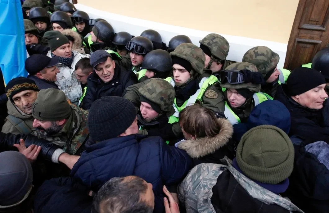 Но люди с лицами, закрытыми масками, прорвались к входу, разбили стекла в массивных дверях. Бросали пластиковые бутылки с водой, петарды, светошумовую гранату, силовики ответили слезоточивым газом и пеной из огнетушителей…