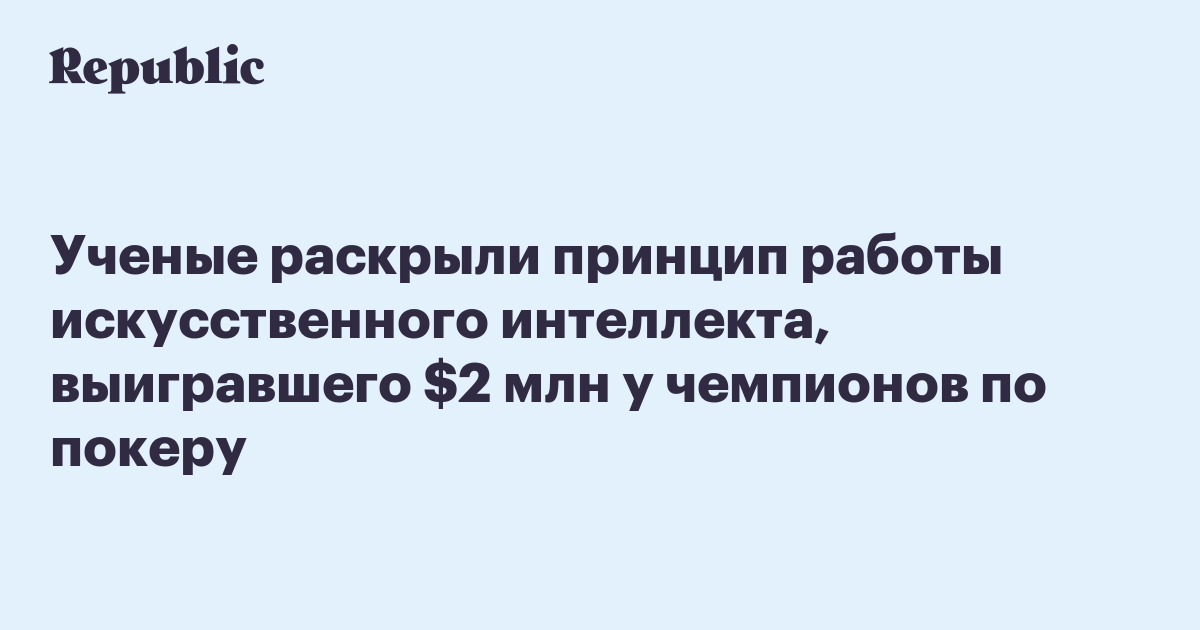 Ученые раскрыли принцип работы искусственного интеллекта, выигравшего $2 млн у чемпионов по покеру