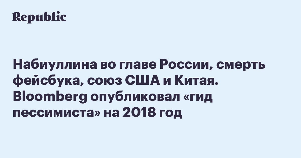 Набиуллина во главе России, смерть фейсбука, союз США и Китая. Bloomberg опубликовал «гид пессимиста» на 2018 год