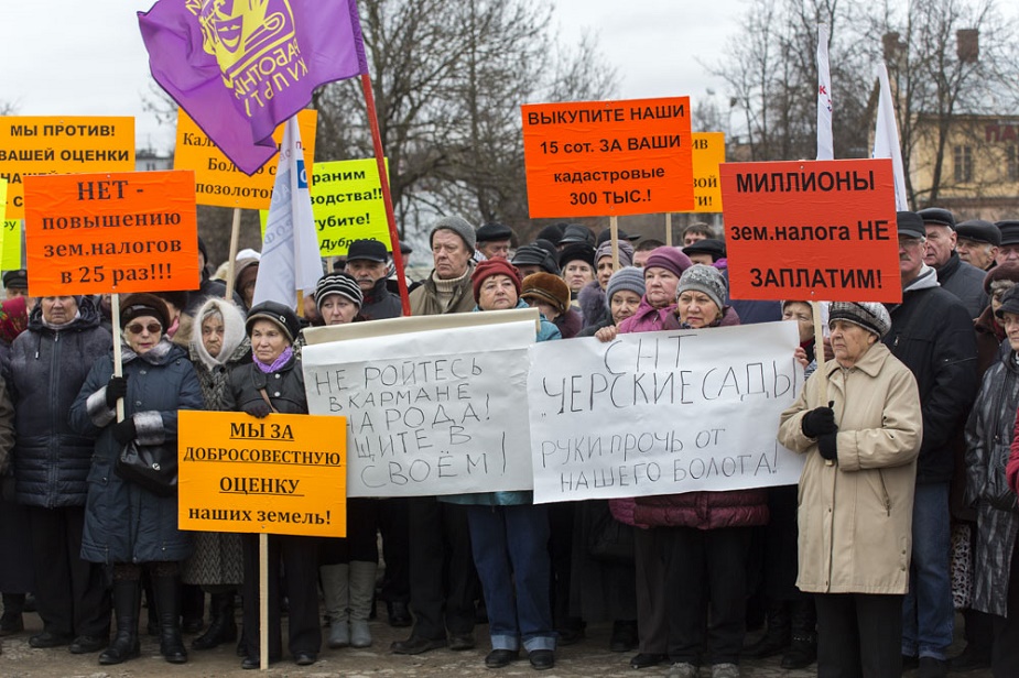 Поводом к выступлениям стало резкое увеличение с 1 января 2017 года кадастровой стоимости земель садоводческих некоммерческих товариществ (СНТ). Средний рост — в 25 раз, но в отдельных случаях доходило и до 47. Стоимость участка в 15 соток увеличилась до 300–350 тыс. руб. Это во много раз выше рыночной стоимости участков, учитывая, что садоводства, как правило, создавались на неудобьях, в заболоченных и заросших кустами полях. «Купите нашу землю за ваши 300 тысяч рублей» — один из популярных лозунгов на «дачных» митингах.