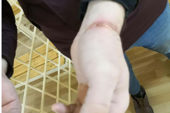 — Потом его вернули в кабинет, где начинали допрос. Следователь спросил Алисхана, готов ли он давать признательные показания. Но подзащитный утверждал, что он невиновен. Еще несколько раз вызывали людей в масках, но они не били, а только оскорбляли нецензурными словами. На втором допросе над ним не издевались, не пытали. Через сутки его передали в другой отдел, там его не били. 17 декабря его этапировали на суд по избранию меры пресечения, молодой охранник очень жестко перетянул наручники, так что они впились в кости. Я сегодня видел кровяные шрамы. Алисхан сказал, что в таком состоянии находился несколько часов. Он потерял чувствительность пальцев, было больно. Таким же образом поступили над другим задержанным — Шамилем. Он терял создание и падал в автозаке.