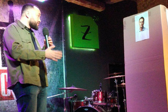 Петербургский депутат устроил рэп-баттл с коробкой c портретом Навального. Фото