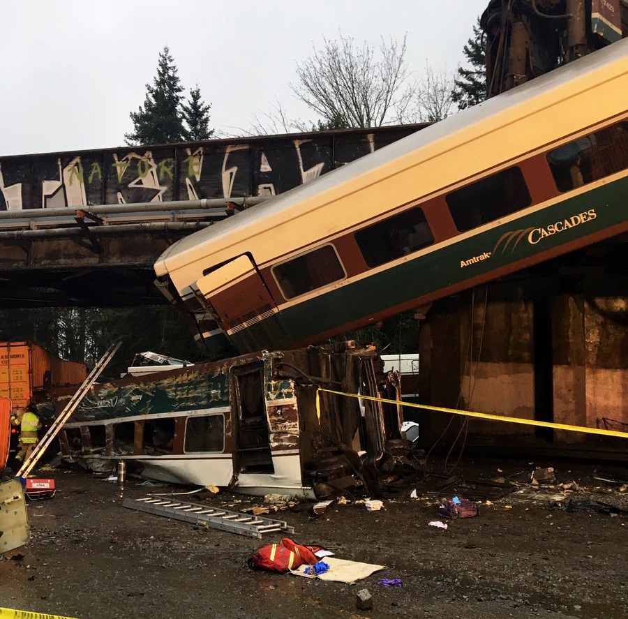 Скоростной поезд, рухнувший с моста в американском штате Вашингтон, в момент аварии превысил допустимую скорость почти в три раза. Во время аварии несколько вагонов поезда сошли с рельсов и рухнули на шоссе I-5. В результате катастрофы, по последним данным, погибли восемь человек, более 200 получили ранения.