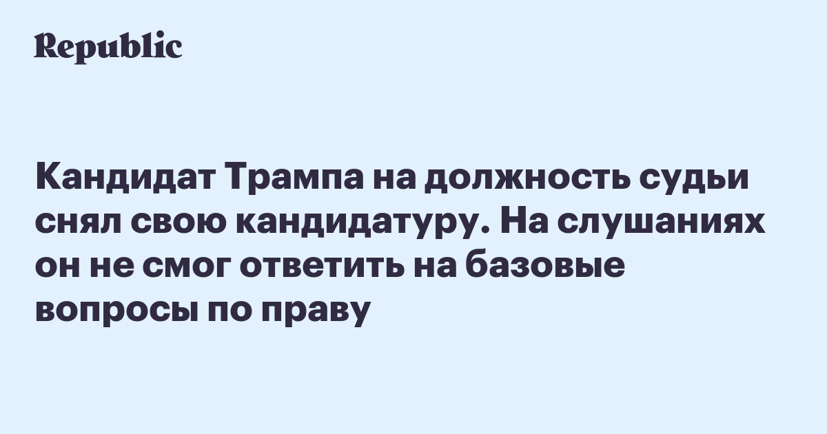 Кандидат Трампа на должность судьи снял свою кандидатуру. На слушаниях он не смог ответить на базовые вопросы по праву